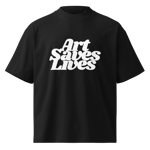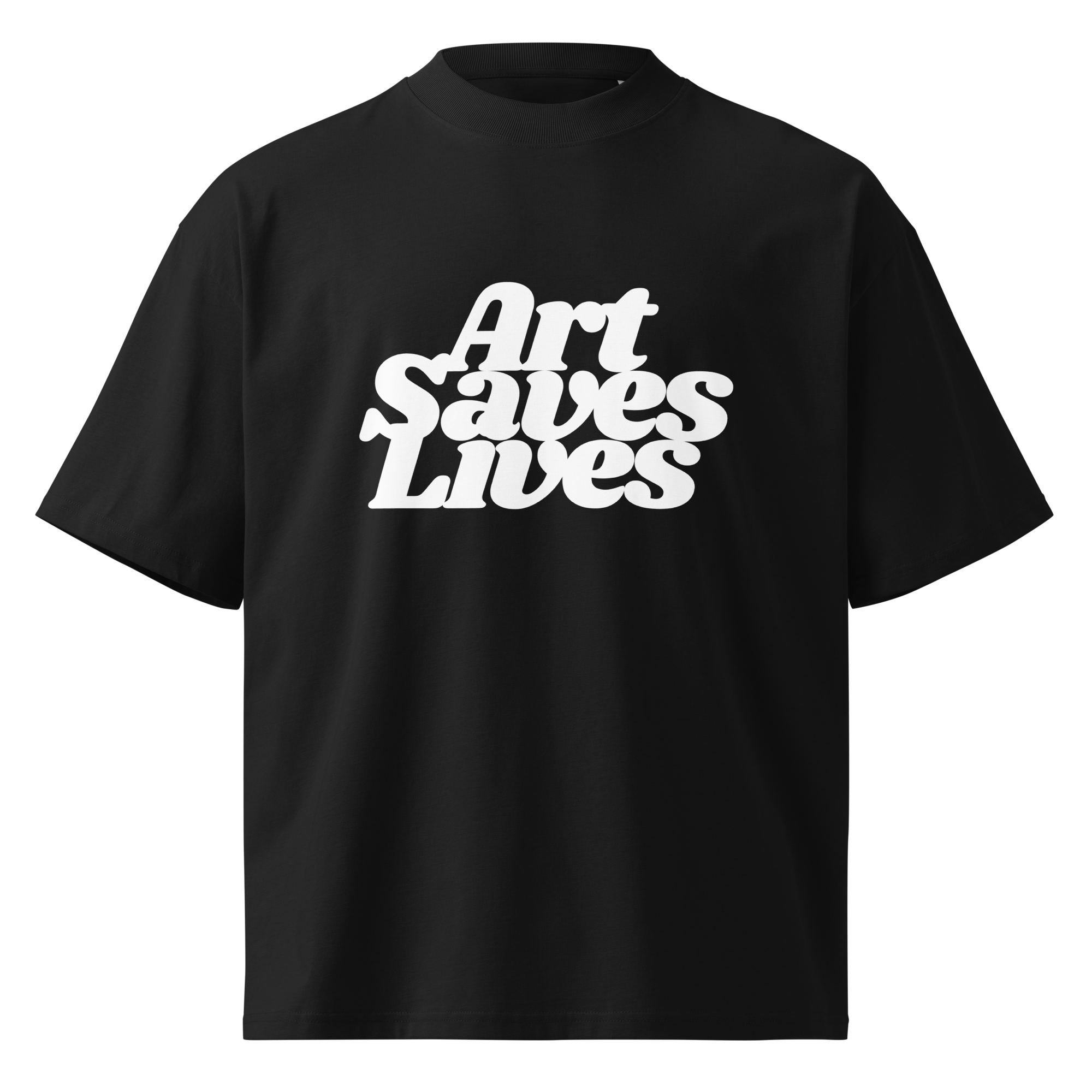 Bold message. Clean fit. The Art Saves Lives oversized tee features soft organic cotton, dropped shoulders, and a relaxed drape that hits just right. Pair it with jeans, cargos, or sweats for an easy everyday streetwear look.