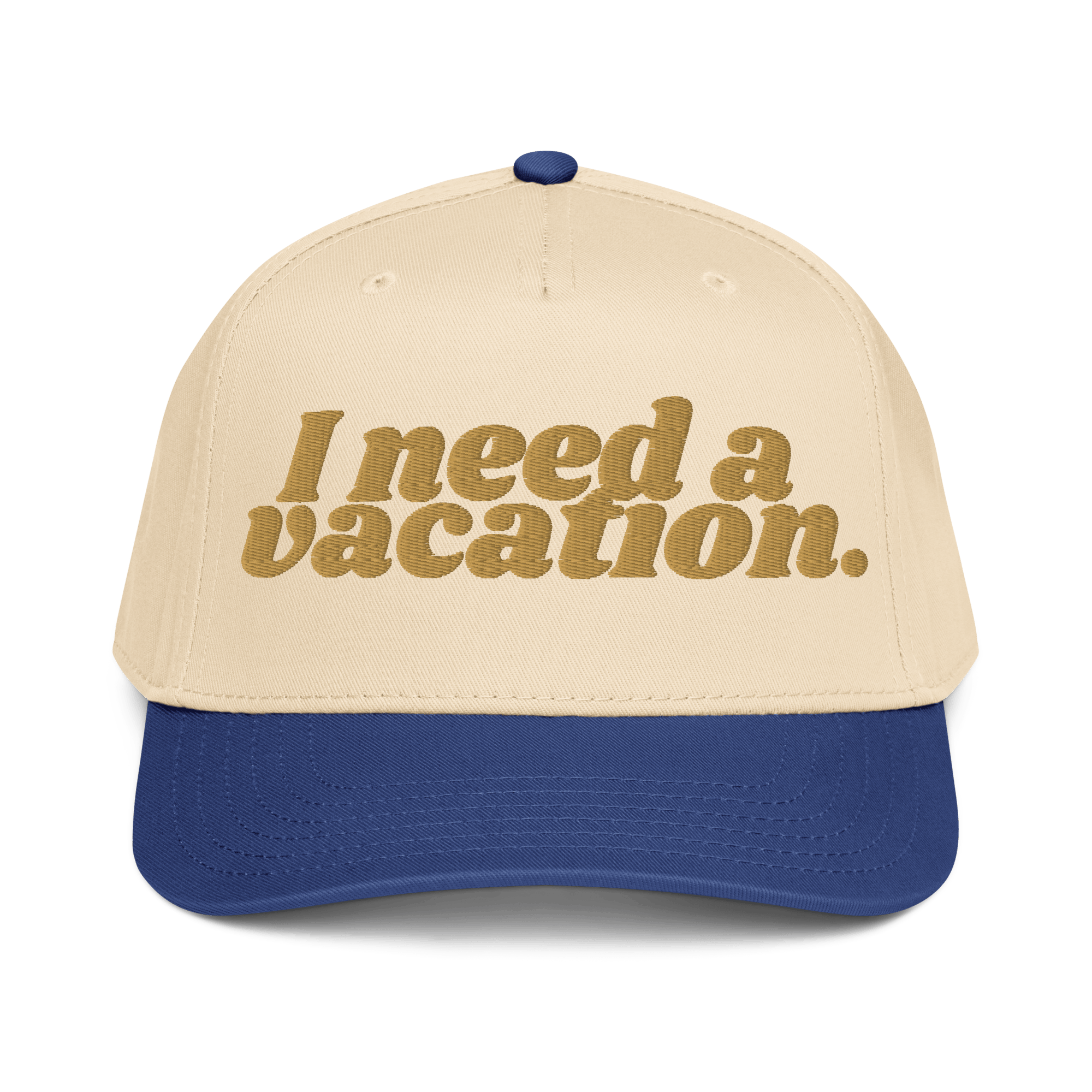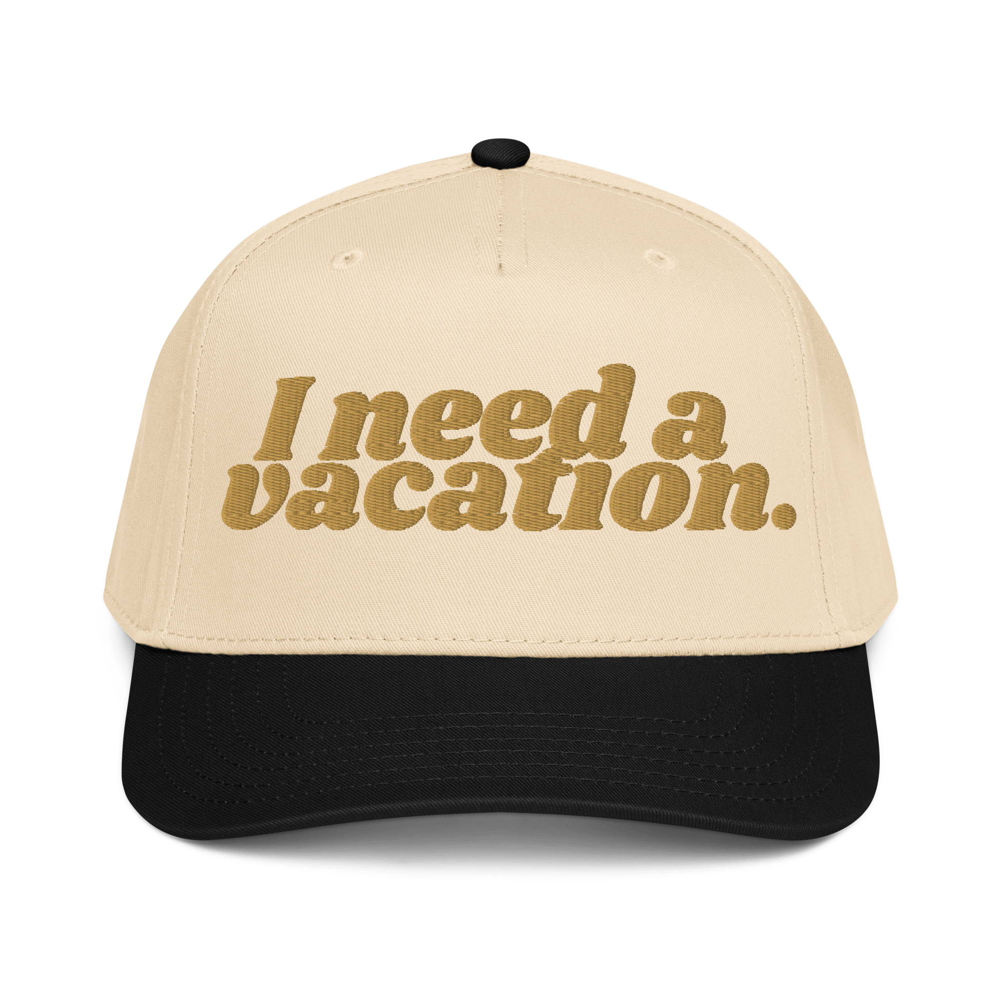 Made for daydreamers and frequent flyers. The I Need a Vacation embroidered 5-panel cap pairs a clean, structured design with a relaxed mid-profile fit. Whether you’re catching a flight or just stepping out for errands, the adjustable snapback and curved visor keep your style smooth and effortless.